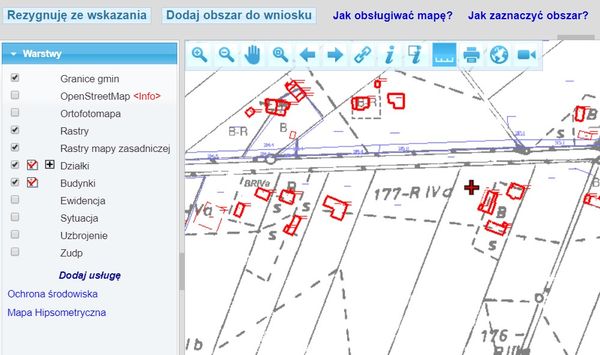 Wymagane jest wybranie działki lub działek ewidencyjnych