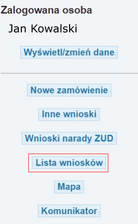 10. Użytkownik może uzyskać wgląd do złożonych wniosków