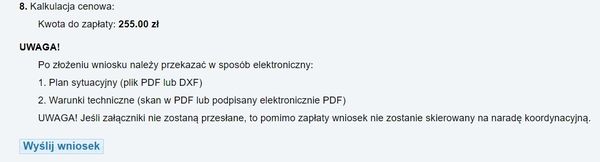 Wysłanie wniosku nie jest zobowiązaniem do zapłaty wyliczonej opłaty. Natomiast wniosek